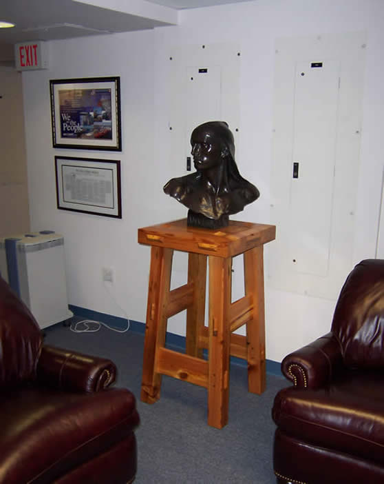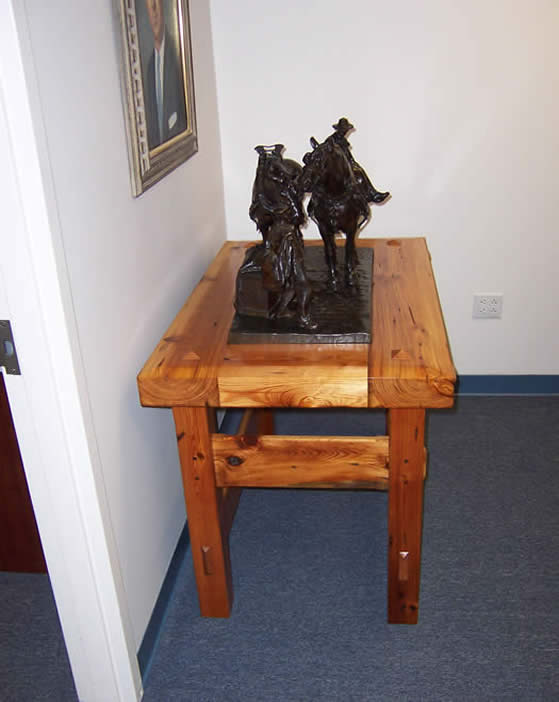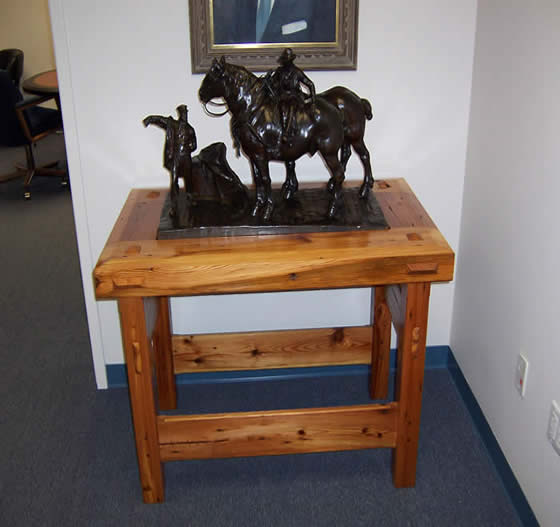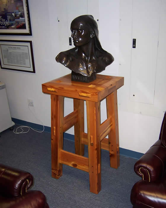 Sculpture stands made from reclaimed Southern Yellow pine.
